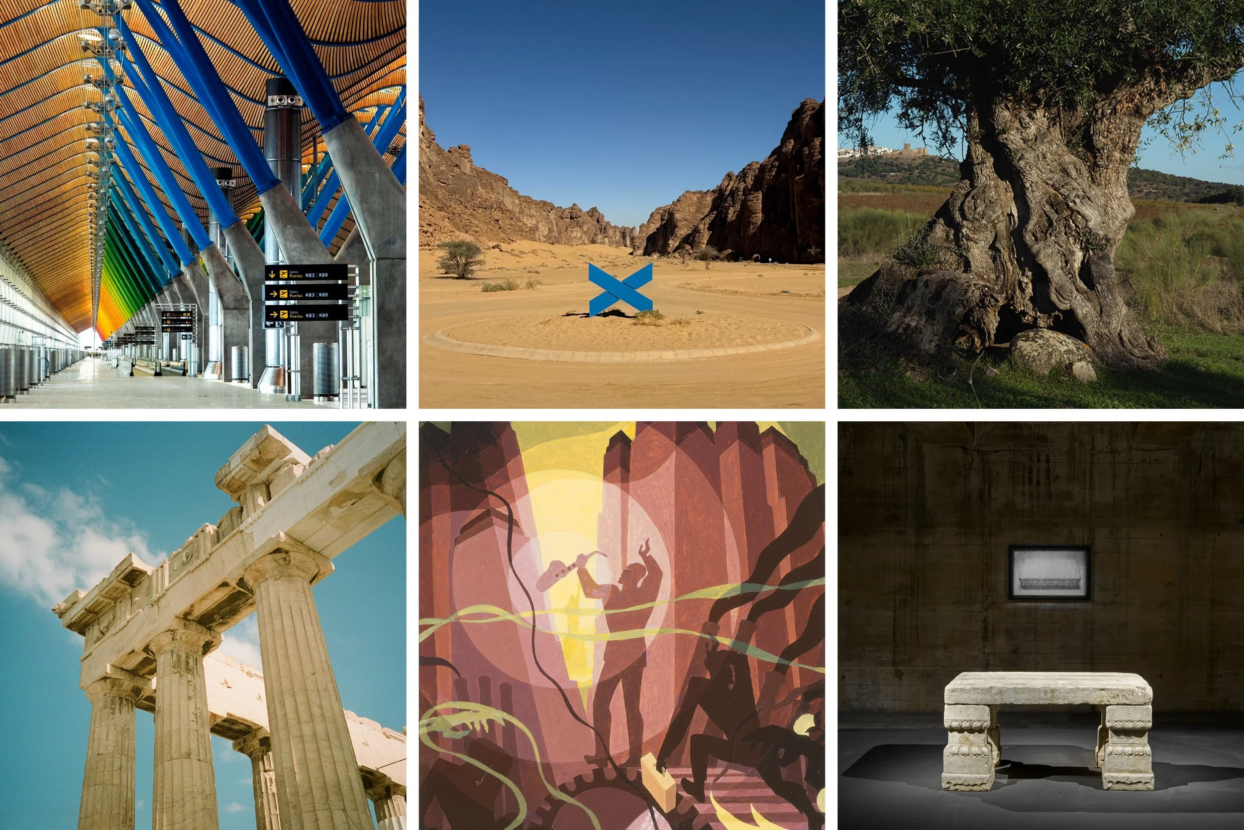 Did you guess the locations of some of the team’s recent adventures? Clockwise from top left: Madrid, AlUla, Alentejo, Berlin, Harlem, Athens.